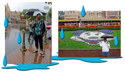 Mickey, Pluto and Donald weren't the only one's welcoming us to Disneyland. Mother Nature gave us a greeting like only she could. Saturday morning was a major soaker, with several HEAVY downpours until the late afternoon. The silver lining was that it made for an all new Disney experience (how many of you can say you saw cast members shop vacuuming out the 'sleds' on Matterhorn Mountain?) And even better, all the locals stayed home, which meant much shorter attraction lines.Actually, when we got home a major snowstorm greeted us (That Mother Nature, up to it again!) so rain and mid-fifties didn't seem so bad in hindsight.
